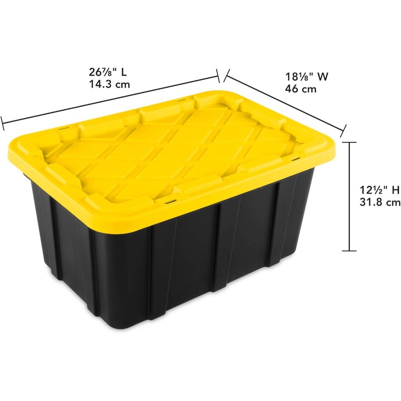 Be the first to review “17 Gal Industrial Tote, Stackable Storage Bin with Snap – Fit Lid Garage, Basement Attic Storage, Black Base and Yellow Lily Lid, 6 – Pack” Cancel reply