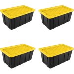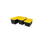 17 Gal Industrial Tote, Stackable Storage Bin with Snap – Fit Lid Garage, Basement Attic Storage, Black Base and Yellow Lily Lid, 6 – Pack
