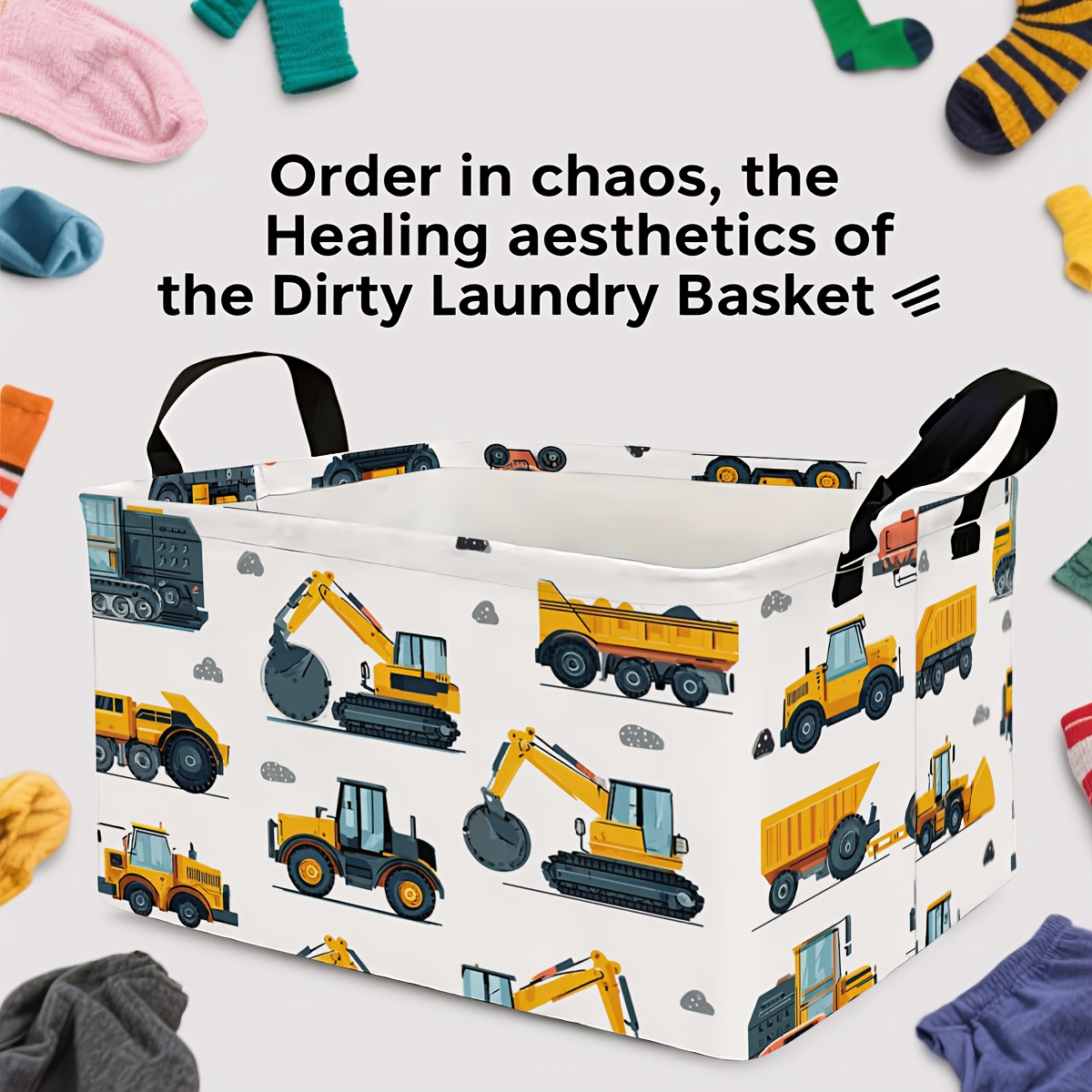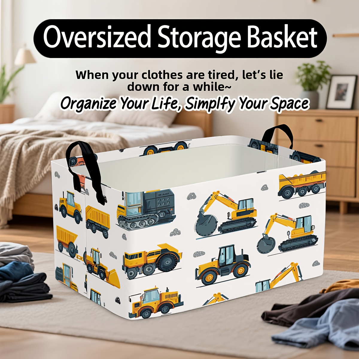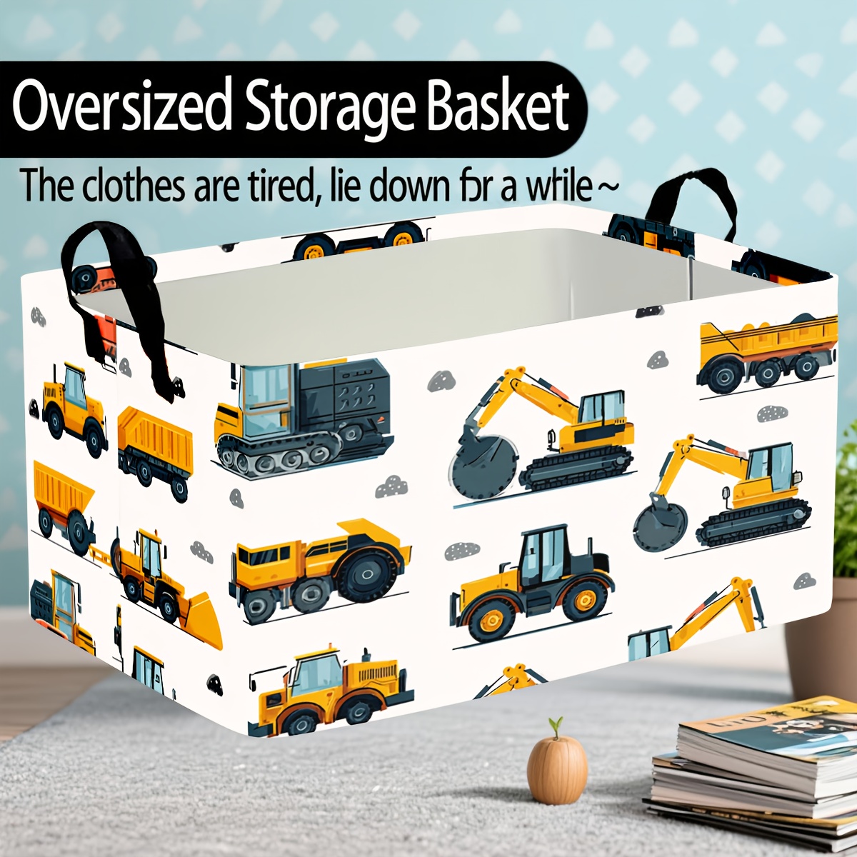 1pc Extra Large Heavy-Duty Construction Vehicle Storage Basket with Metal Frame – Heavy-Duty Oxford Fabric Construction Bin with Sturdy Handle & Open Top, Large Capacity Organizer For Home, Office, Construction Sites – Ideal For Toys, Sports Gear