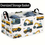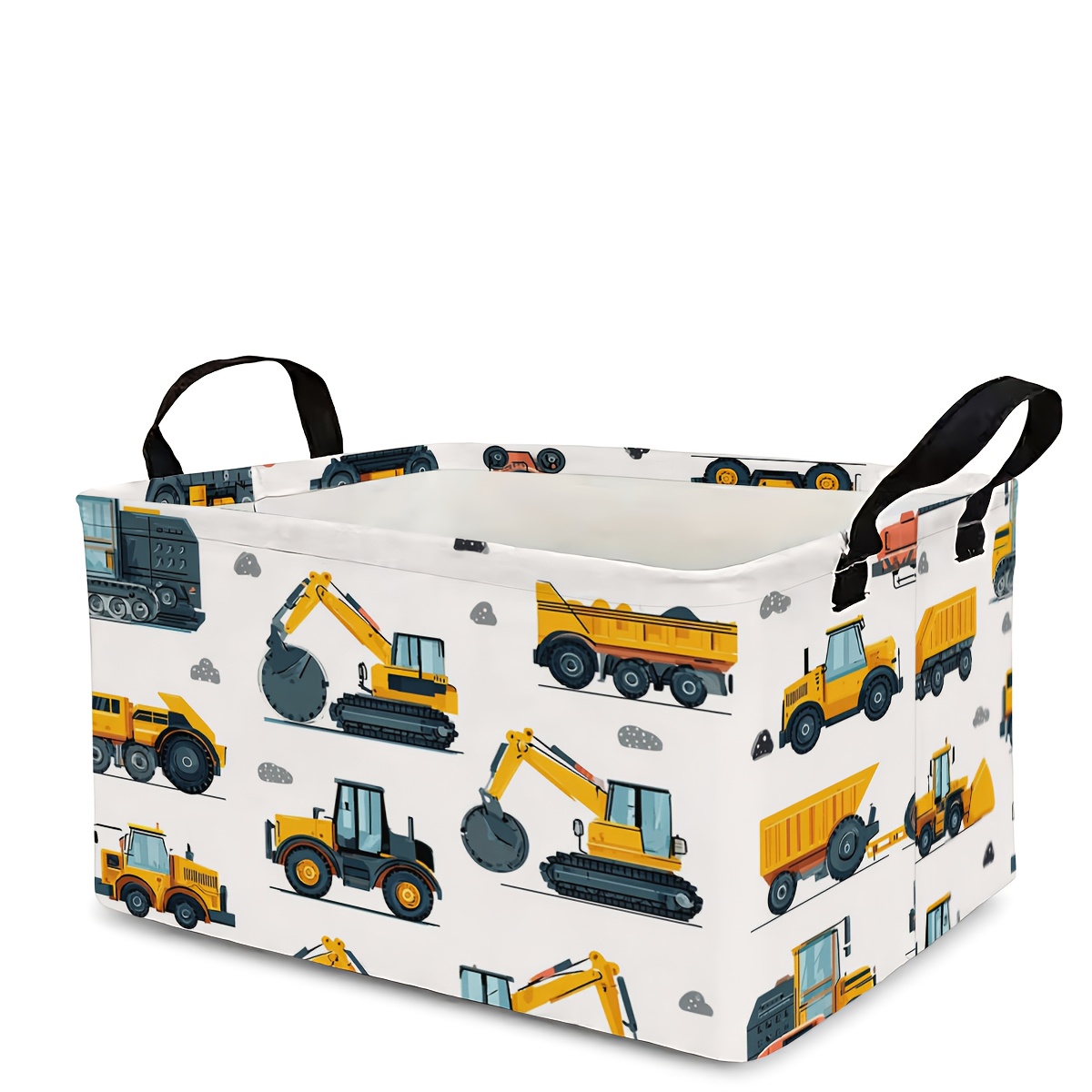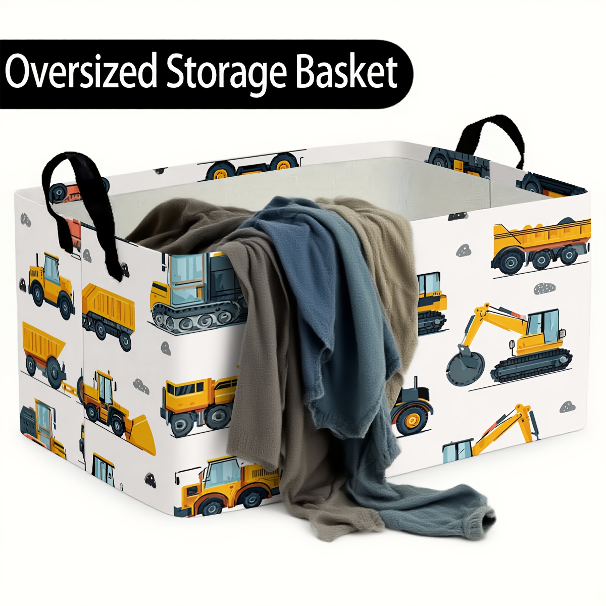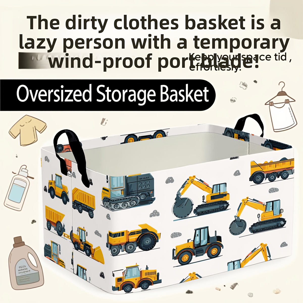 1pc Extra Large Heavy-Duty Construction Vehicle Storage Basket with Metal Frame – Heavy-Duty Oxford Fabric Construction Bin with Sturdy Handle & Open Top, Large Capacity Organizer For Home, Office, Construction Sites – Ideal For Toys, Sports Gear