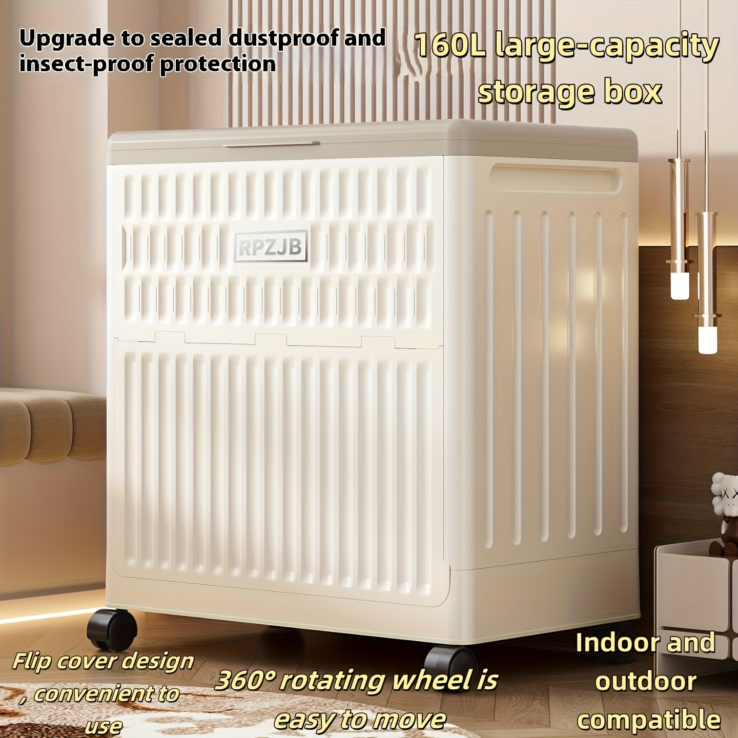 1pc Large 42.27 Gallon Heavy-Duty Plastic Storage for Bin with Wheels & Flip-Top Lid – Heavy-Duty Construction, Dustproof &, Space-saving Organizer For Home, Dorm, Basement – Ideal For Clothes, Toys, Snacks, Seasonal Decor – Easy To Use