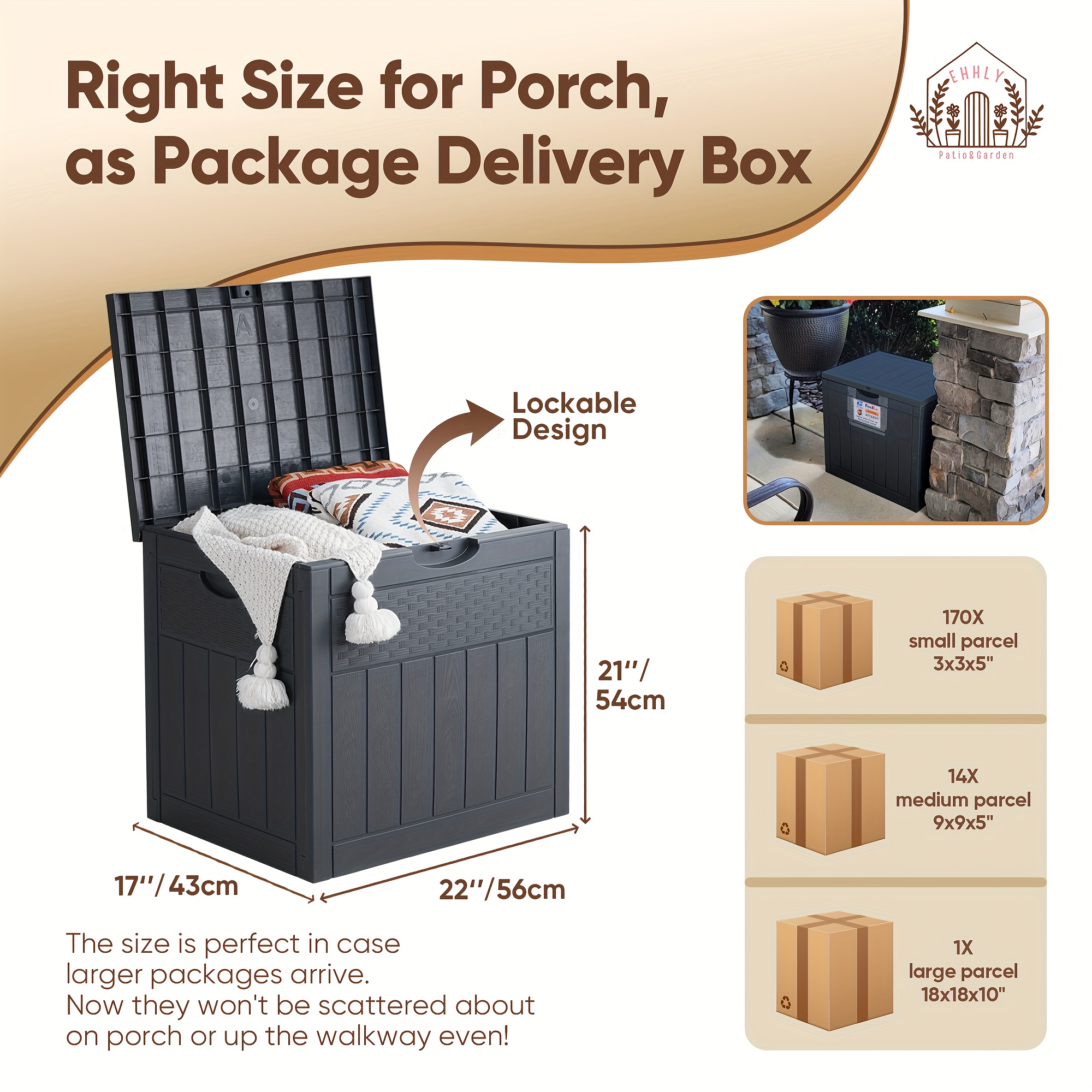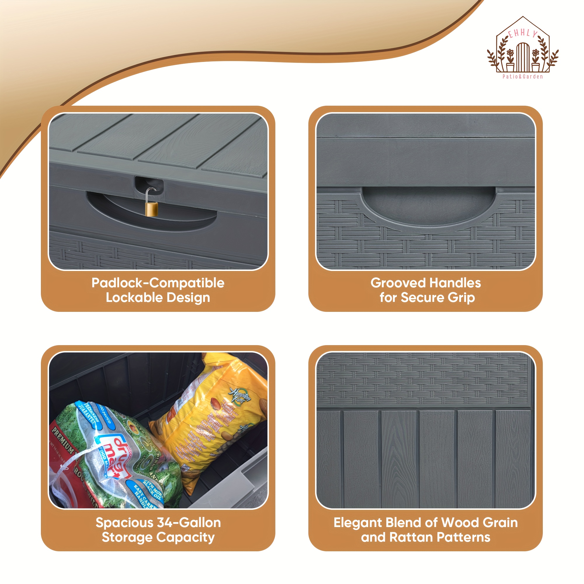 35 Gallon Large Lockable Deck Box – Weatherproof & Waterproof Resin Outdoor Storage Box with Secure Lid for Outside, Sealed Design for Patio Furniture Cushions, Pool Toys, Tool Box, Grey, Free Shipping, Box,Cabinet,Rack for Outdoor Storage