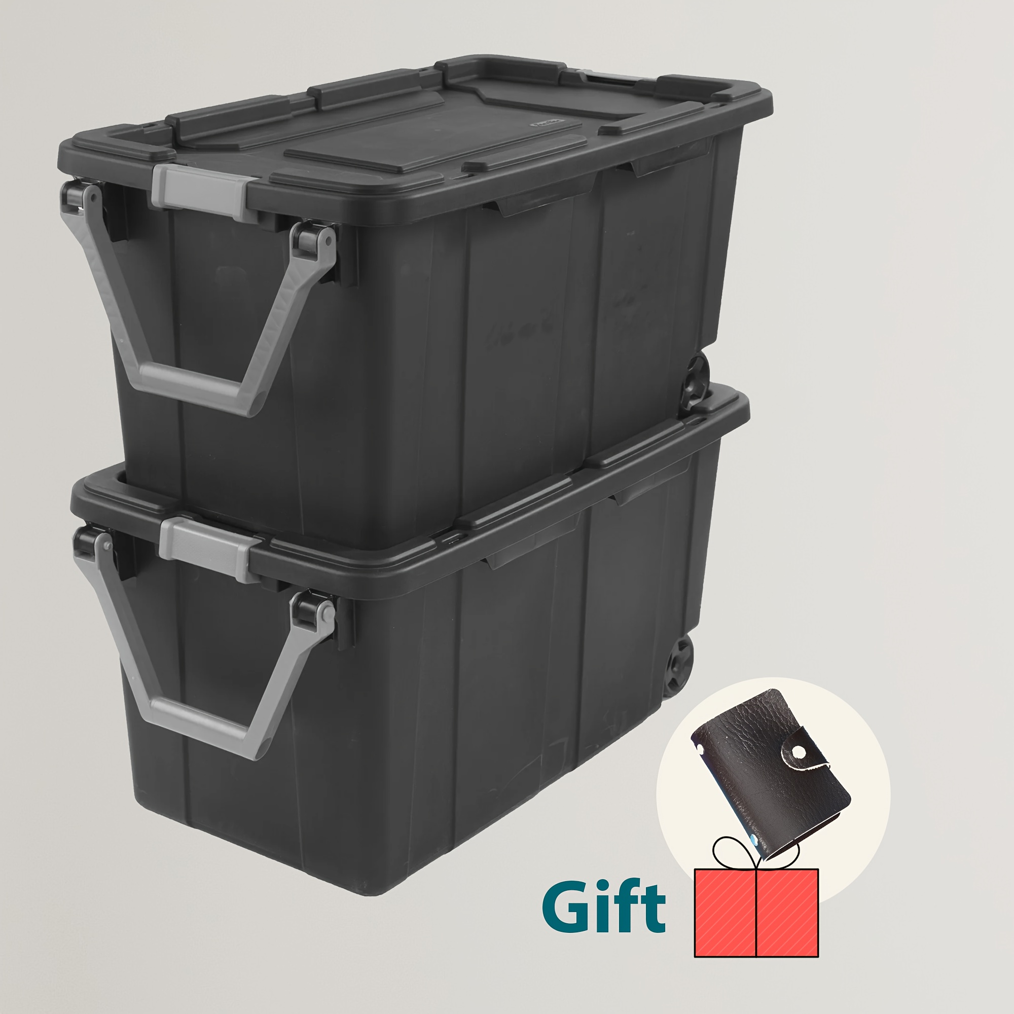 40 Gallon Wheeled Industrial Tote, Rugged Plastic Storage Bin, Latch Lid, Dark Gray, 2 Count, Utility Tote, Classic Style, Rugged Design, Reinforced Latch, Storage Container, Wheeled Carton, Industrial Workers, Commercial Use