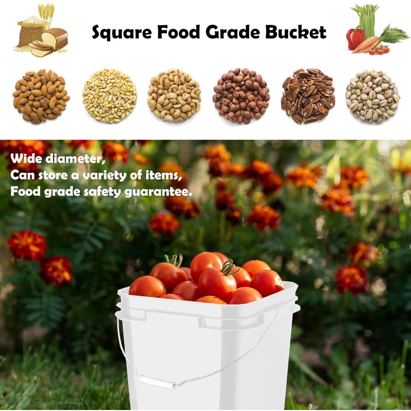 Be the first to review “5 Gallon Bucket with Lid Square Food Grade Plastic Pail with Metal Handles Heavy Duty Industrial Storage Containers with DIY Stickers Rubber Mallet Lid Opener 6 Pack White” Cancel reply