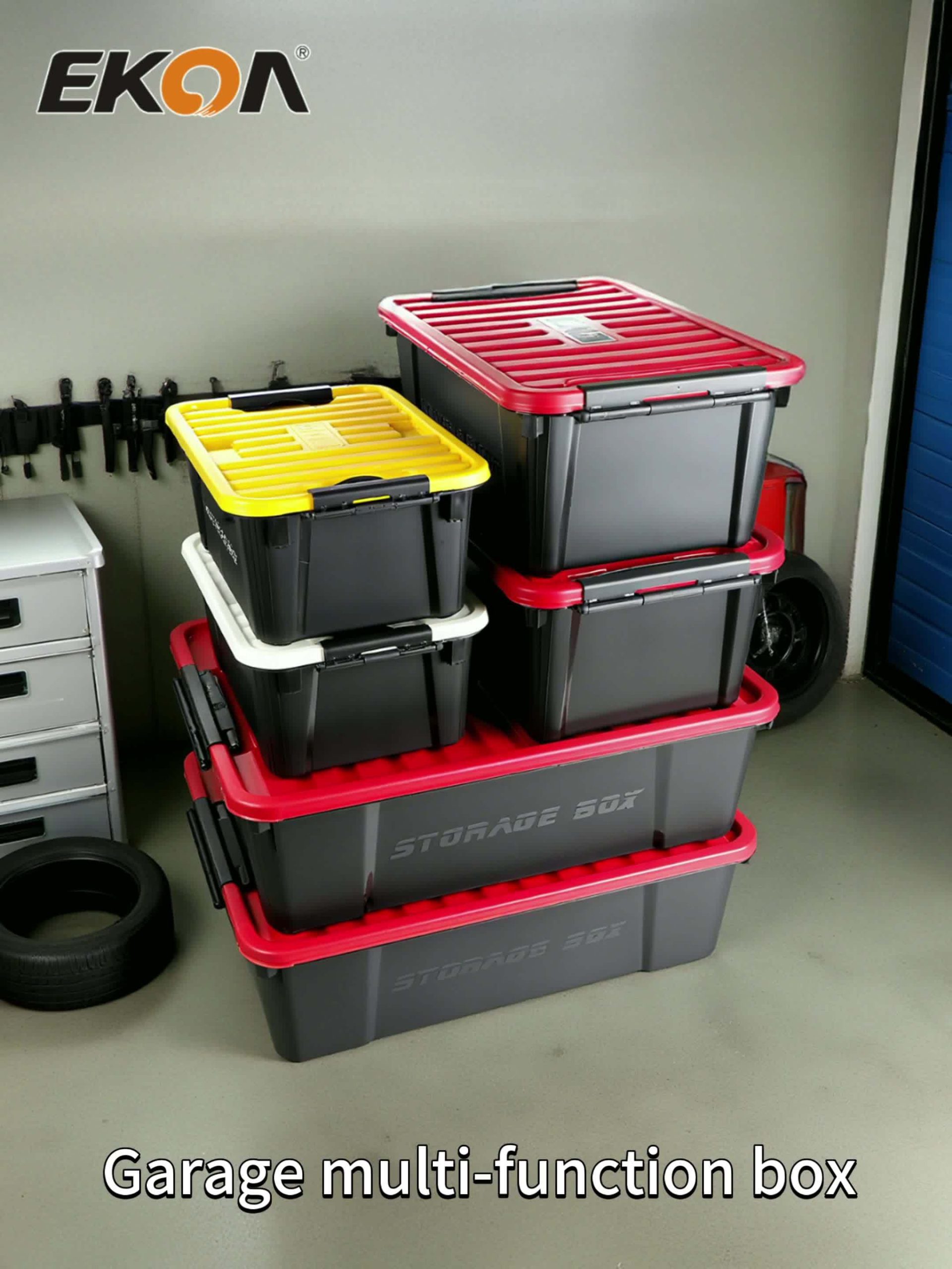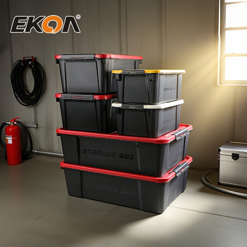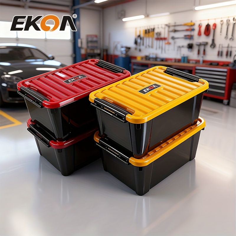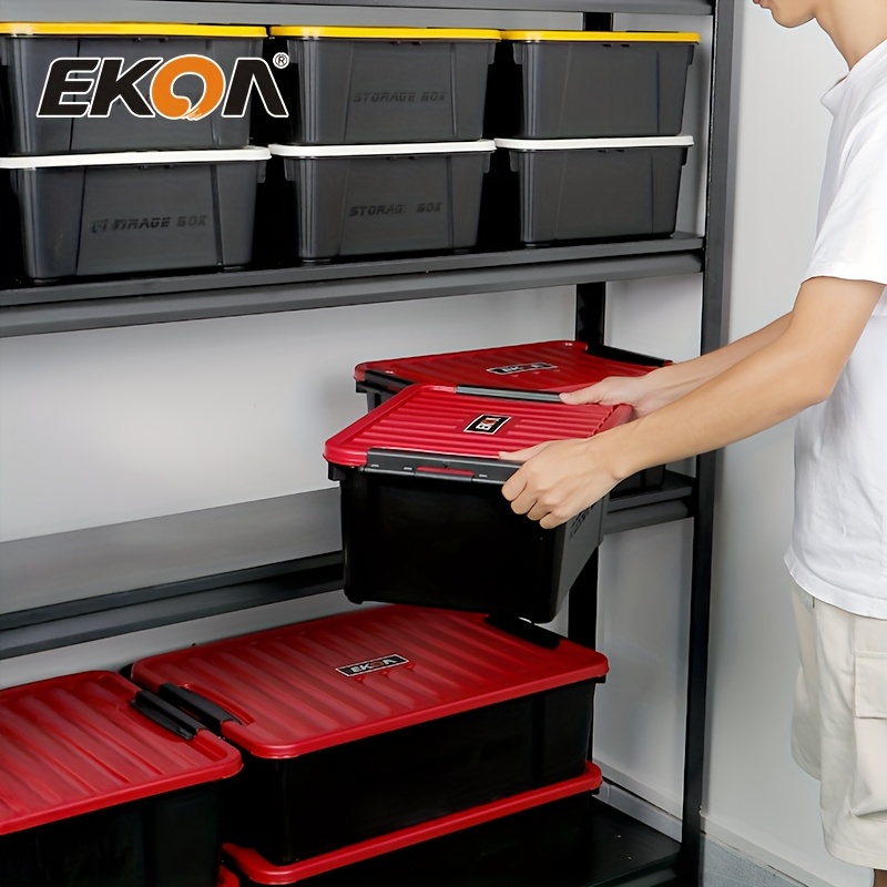 EKON Heavy-Duty Plastic Storage Box with Locking Lid & Clip-On Lid – Heavy-Duty Construction, Space-Saving Stackable Design, for Garage, Workshop, Home Organization – Ideal For Tools, Equipment, Parts – Durable Plastic Organizer, Compact Organizer