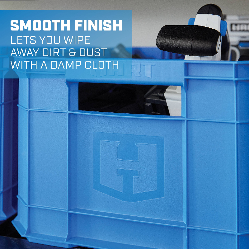 Be the first to review “HART 8.5 Gallon Heavy-Duty Blue Plastic Storage Crate with Flip-Top Lid & Corner Holes – Stackable Clear Label Area, Ideal for Home, Garage, Warehouse Organization” Cancel reply