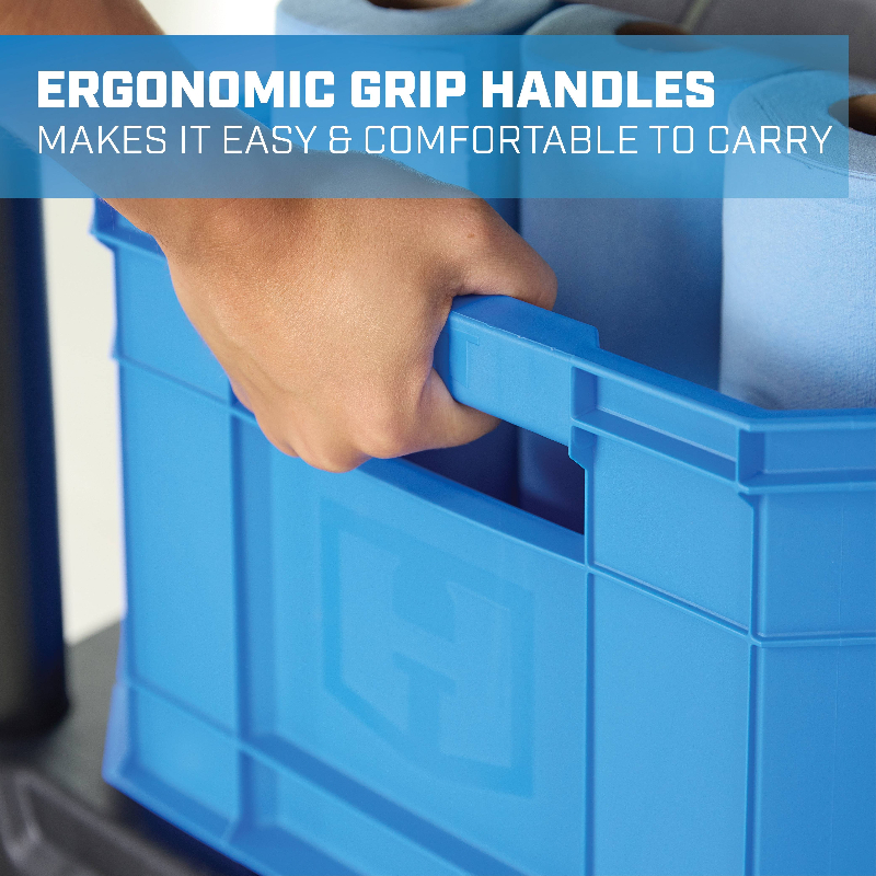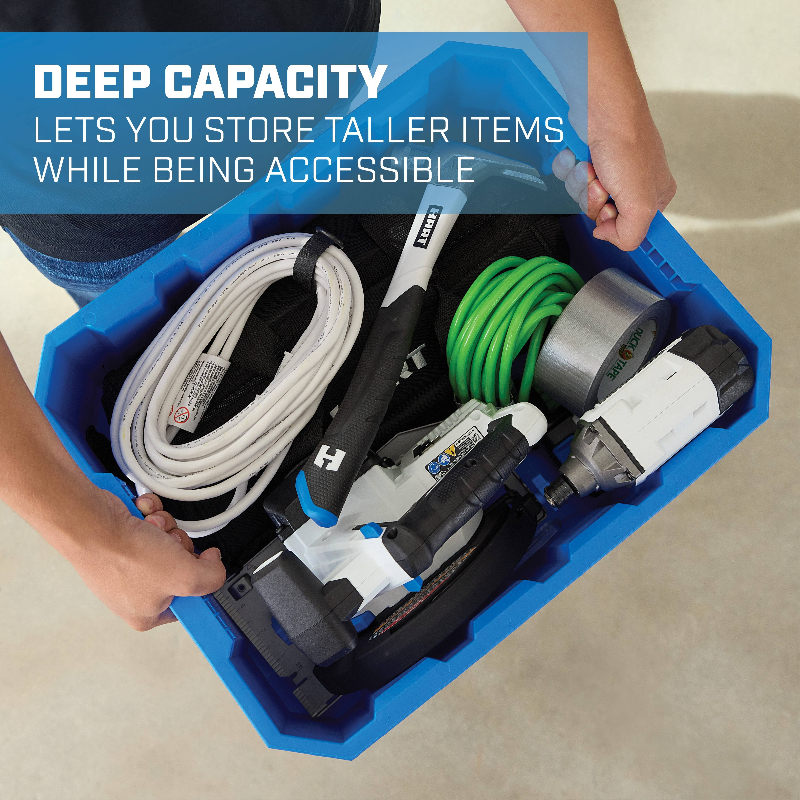 Be the first to review “HART 8.5 Gallon Heavy-Duty Blue Plastic Storage Crate with Flip-Top Lid & Corner Holes – Stackable Clear Label Area, Ideal for Home, Garage, Warehouse Organization” Cancel reply