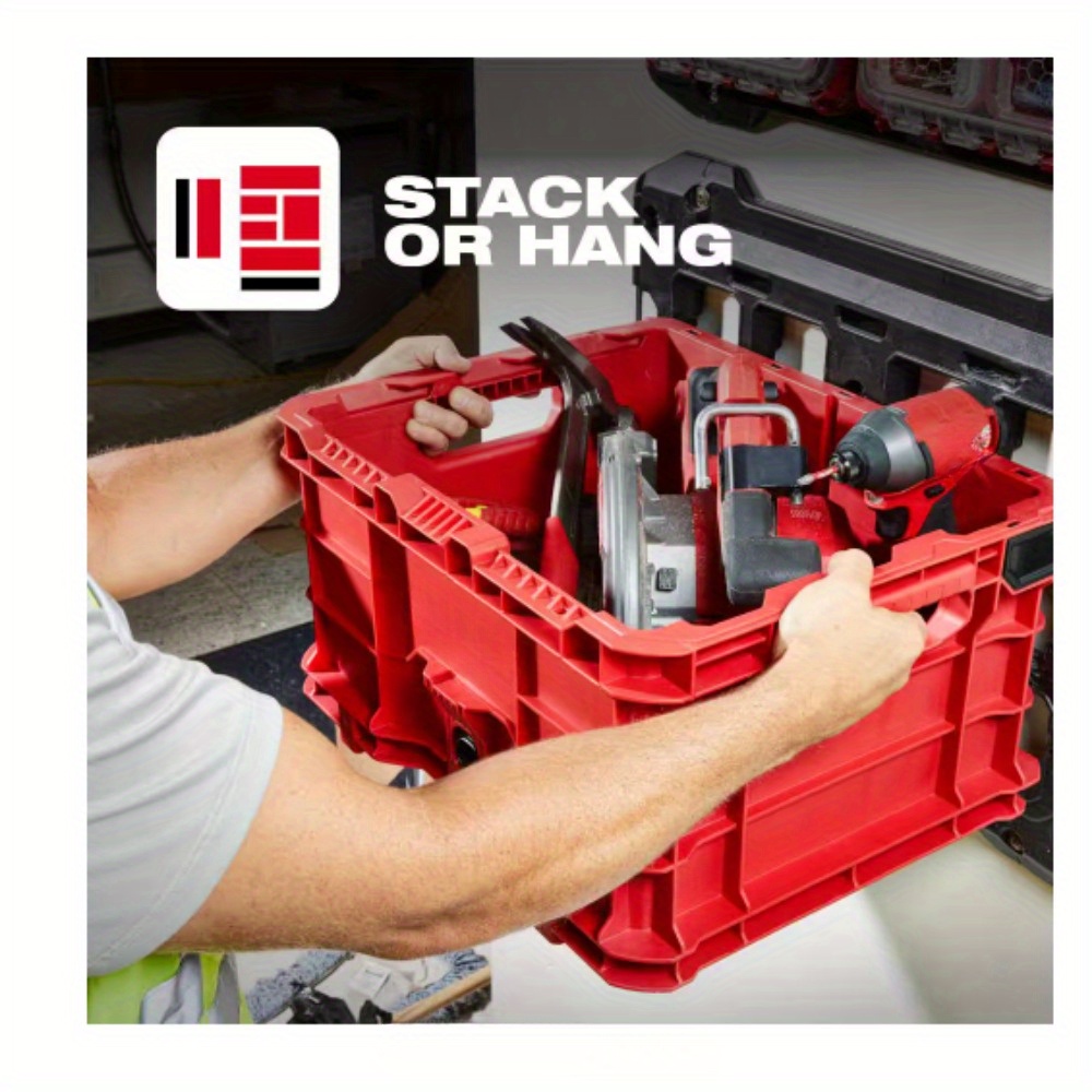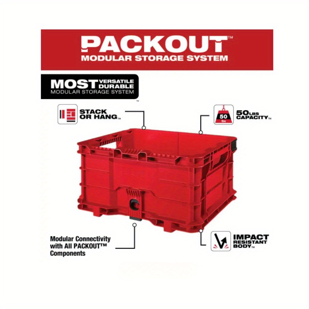 PACKOUT Heavy-Duty Modular Tool Storage Crate Bin – 18.6-Inch Large Capacity Plastic Toolbox with Flip-Top Lid, 50 lbs Capacity, Stackable & Hangable Design, Tool-Free Assembly for Workshop,, Jobsite (Compatible with PACKOUT System)